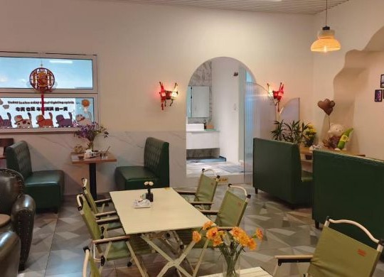 店铺在公寓楼下,铺租是这边比较便宜的,装修精致高档,有空调厨房等设施。